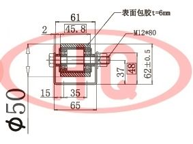 2.滾輪直徑:φ50mm,福來輪凈寬:45.8mm(膠面寬),使用軸:M12